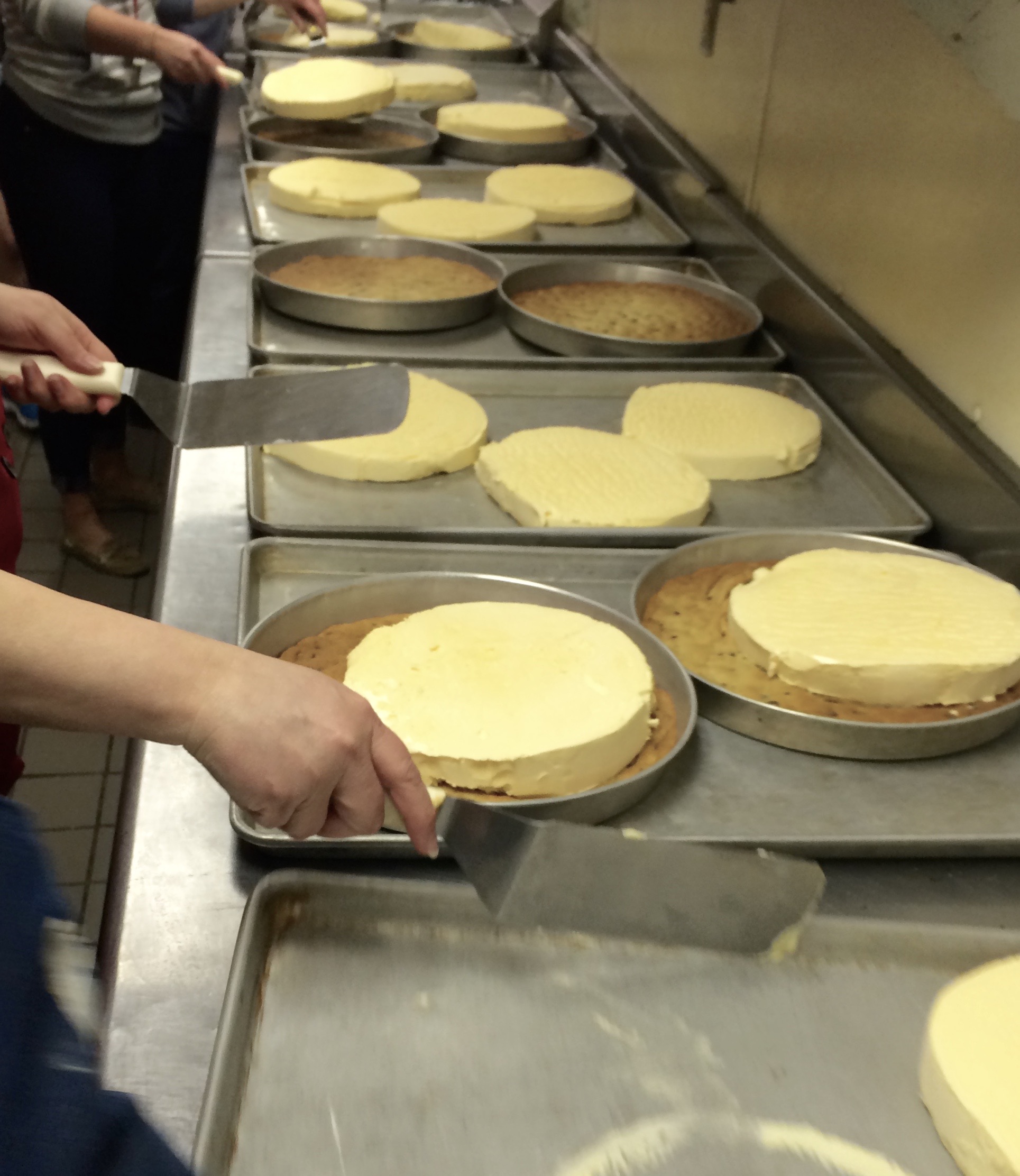 Thus began a long process of experimenting with ingredients, temperatures, timing, pans, ice-cream, serving, and all sorts of baking-in-a-big-kitchen-for-several-hundred-people issues. With summer fast approaching, there wasn’t much time to crack the code of The Perfect Dessert.