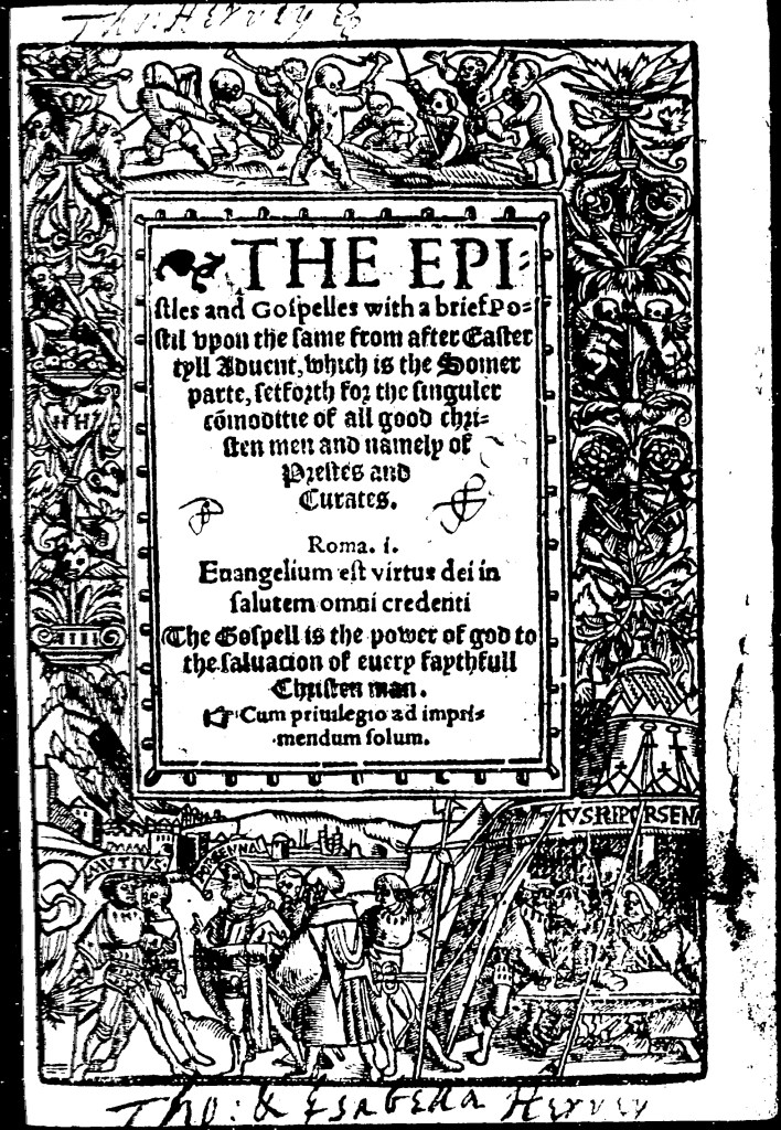 Title page for “The Epistles and Gospelles…” (c. 1540) by Richard Taverner